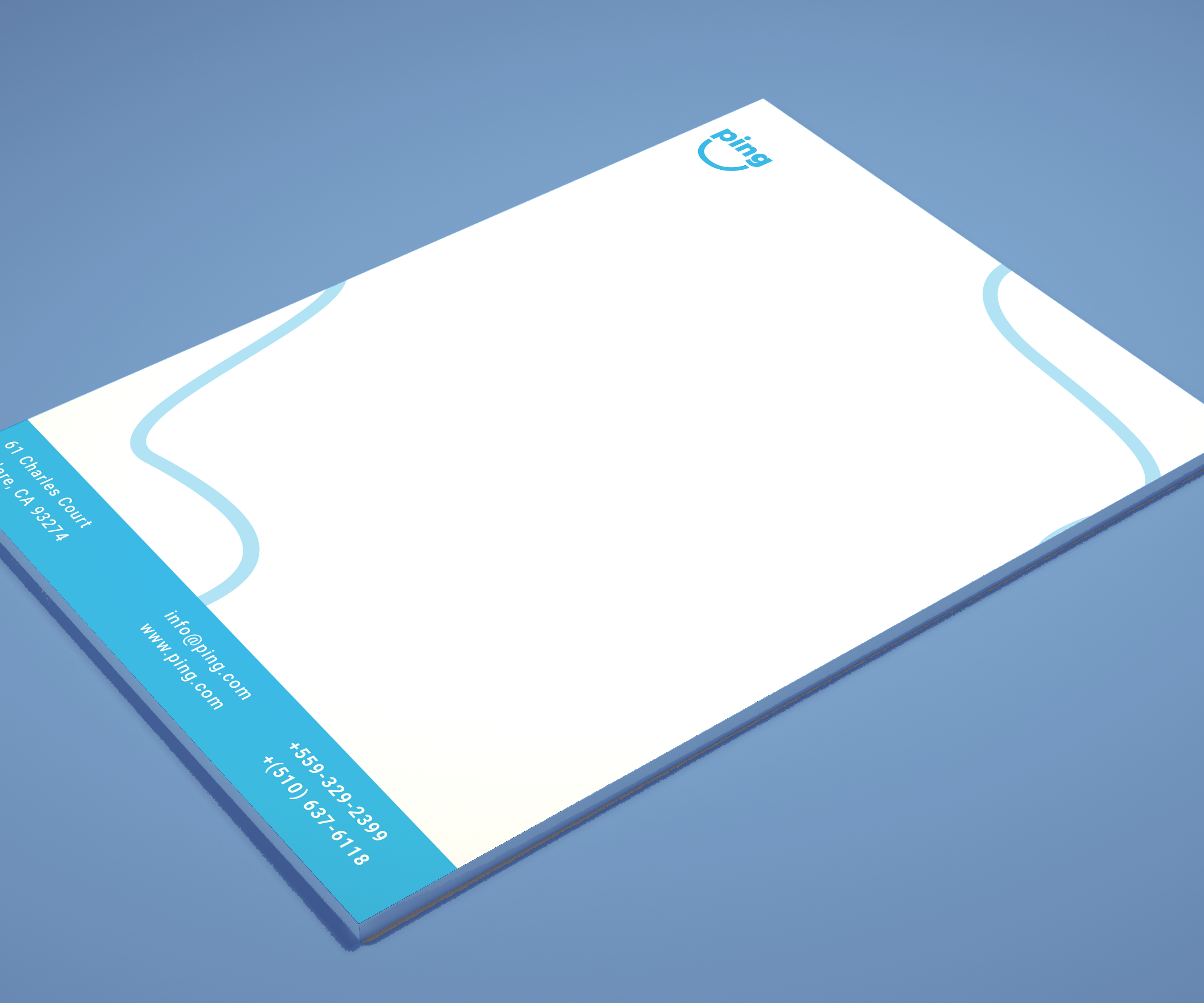 business card mockup design for Ping letterhead mockup design for Ping lanyard mockup design for Ping t-shirt mockup design for Ping art asset illustration for Pings banner head